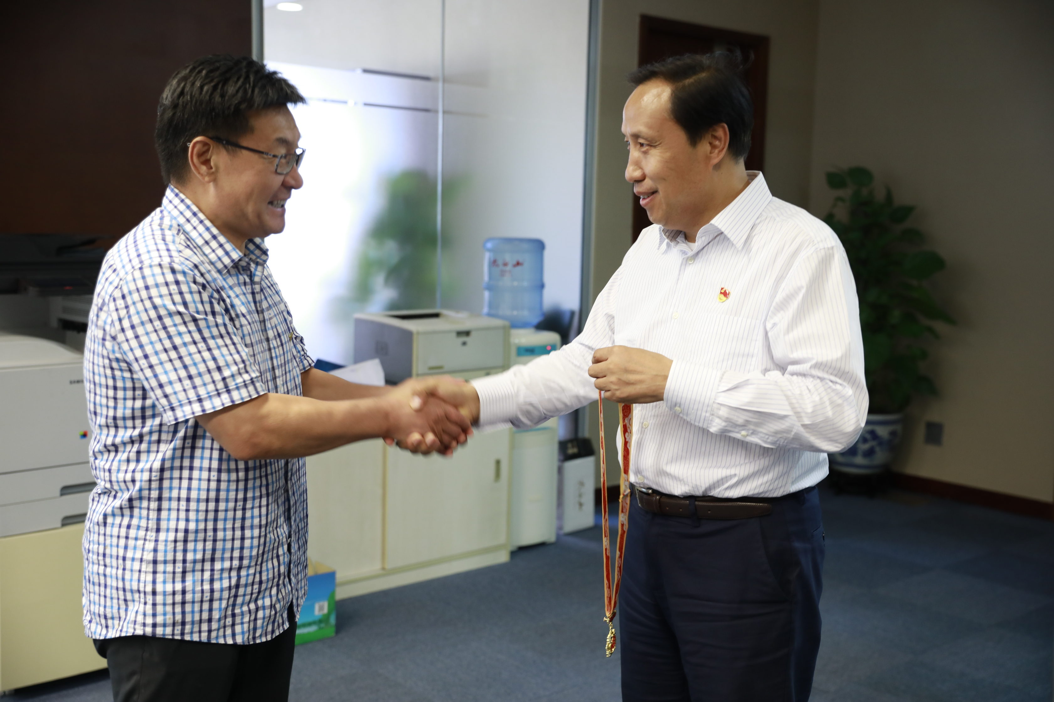 新中國(guó)成立以來,京能集團(tuán)印偉民、劉榮、張興文、馬植勝、田鳳林、崔淑敏、黃祖旺七人獲全國(guó)勞模稱號(hào)。近日,京能集團(tuán)工會(huì)在集團(tuán)黨委副書記、工會(huì)主席李迅的帶領(lǐng)下,走進(jìn)其中六位退休勞模家中,將“慶祝中華人民共和國(guó)成立70周年”紀(jì)念章和鮮花送到勞模手里,并同勞模們親切握手交談,仔細(xì)詢問他們的身體和家庭情況。